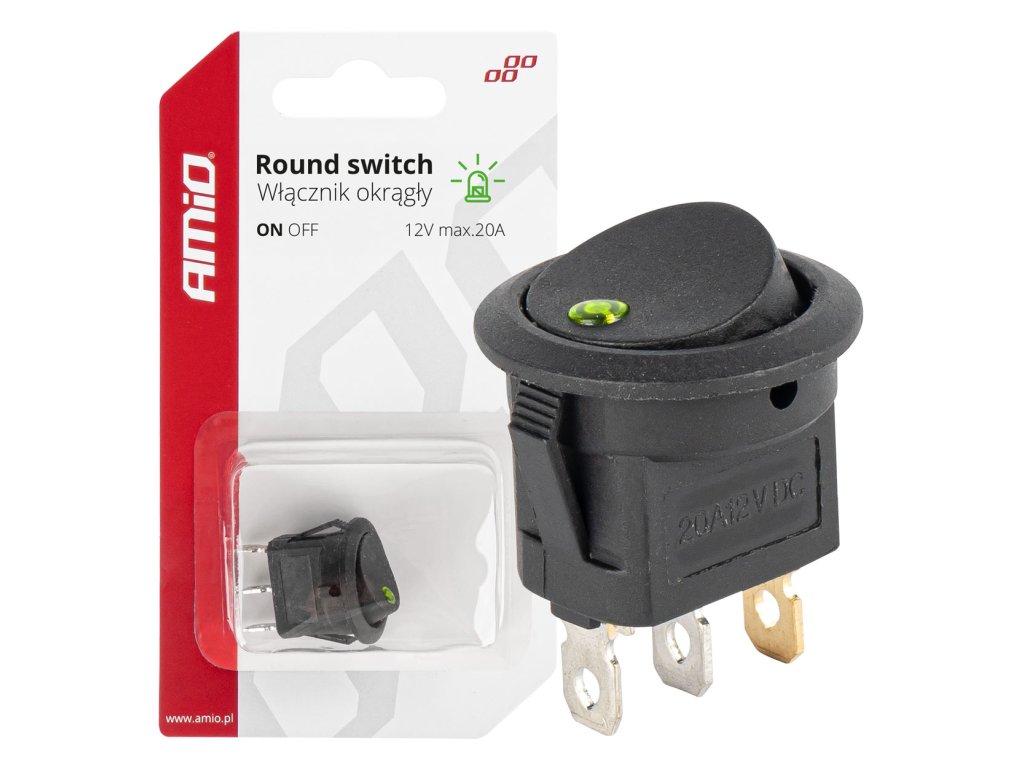 AMiO Kolískový okrúhly prepínač so zeleným podsvietením